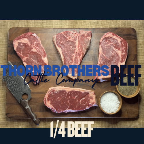 Enjoy the best of Texas with our 120 lbs Beef Share from Thorn Brothers Beef. This package features a carefully selected variety of dry-aged, USDA inspected cuts: steaks, roasts, ground beef, and specialty portions, all vacuum sealed for freshness. Sourced straight from our family ranch, every bite promises rich, authentic flavor and exceptional quality. Perfect for families or enthusiasts wanting a freezer stocked with versatile, premium beef ready for any recipe. Elevate your meals with the convenience and taste of ranch-direct beef delivered to your door.